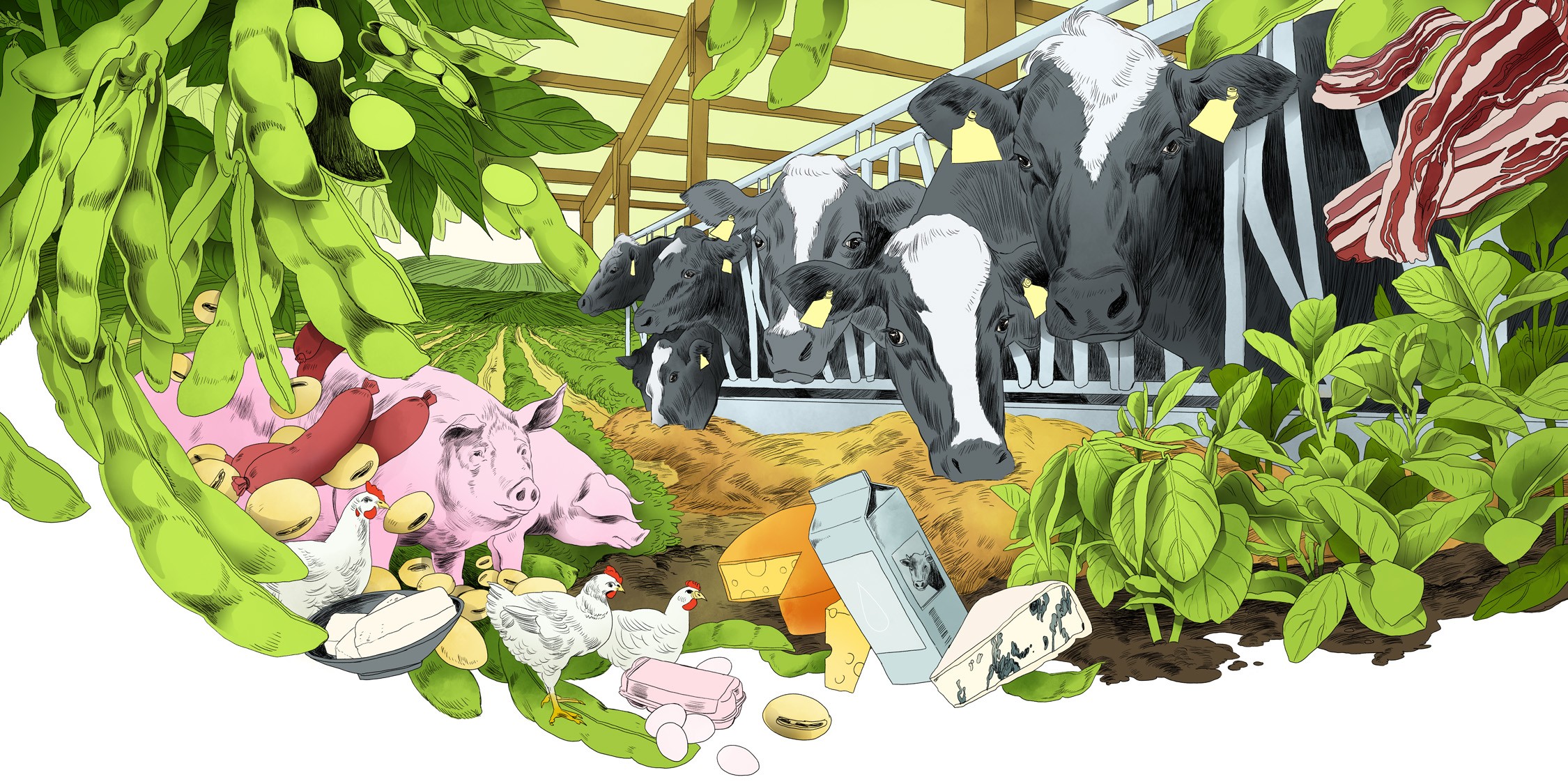 In Deutschland und der EU dominiert mengenmäßig die Verwendung von Sojaschrot als proteinreiches Futtermittel für die Fleisch- und Milcherzeugung. Die direkte Verwendung von Soja in der menschlichen Ernährung spielt von der Menge her bislang eine deutlich untergeordnete Rolle: Von den 60 Kilogramm in der EU pro Kopf und Jahr konsumiertem Soja verstecken sich 55 Kilogramm in Fleisch, Eiern, Milch oder Fisch – sie werden als Futtermittel verbraucht. Lediglich 3,5 kg werden direkt vom Menschen konsumiert.